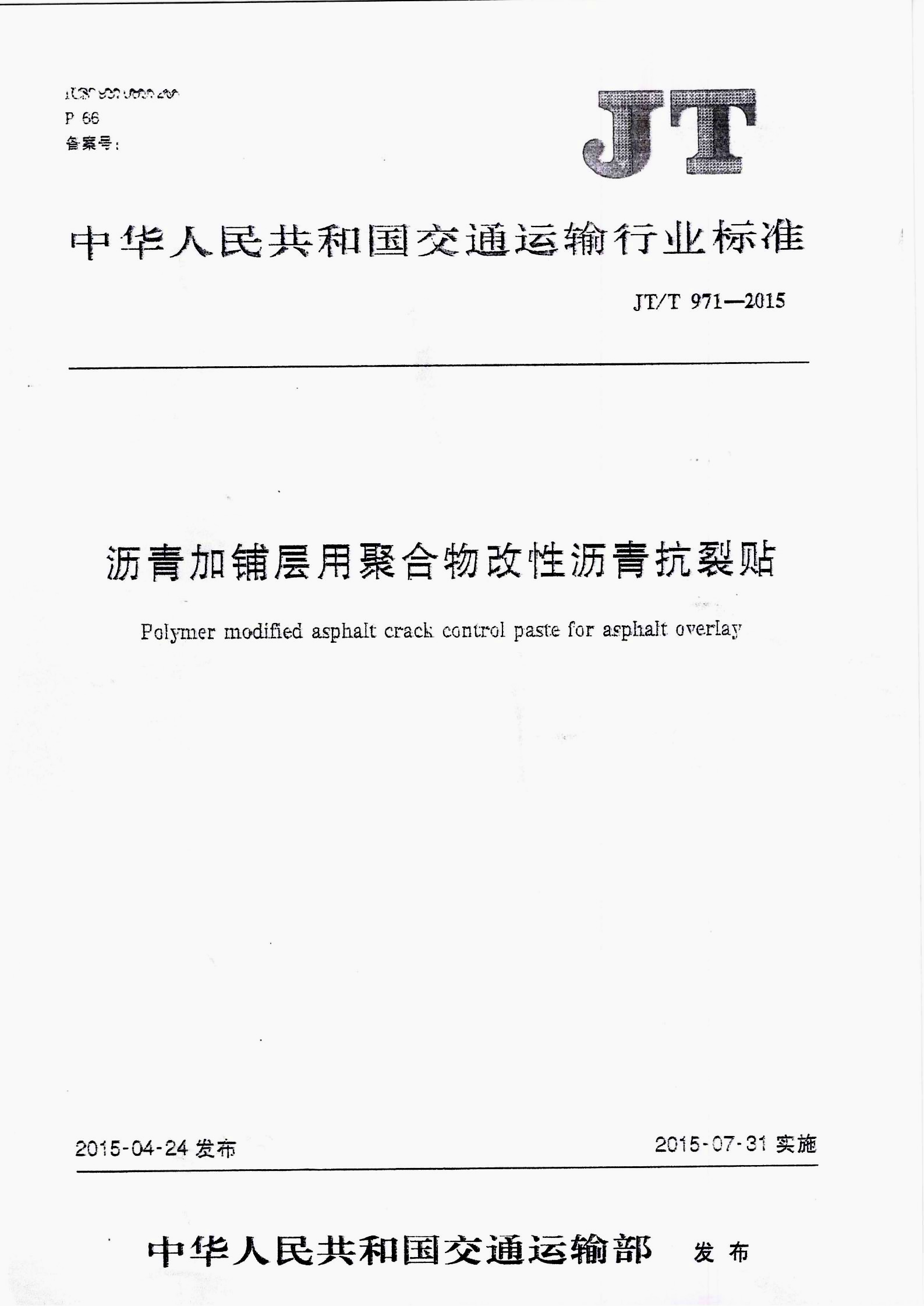 JTT 971-2015 改性沥青开裂贴